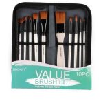 Cartuchera SAPIENS con 10 pinceles de cerda y cabo de madera corto.
